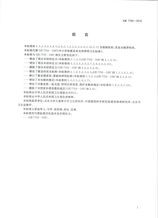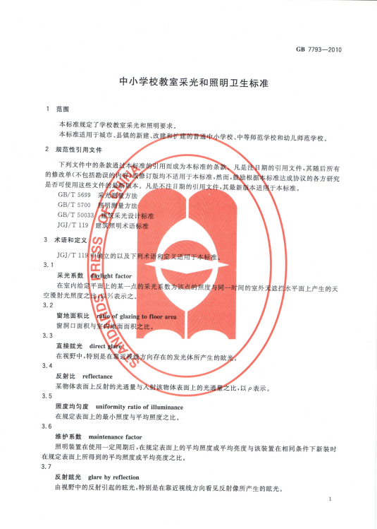 — 中小學(xué)教室采光和照明衛(wèi)生標(biāo)準(zhǔn) —