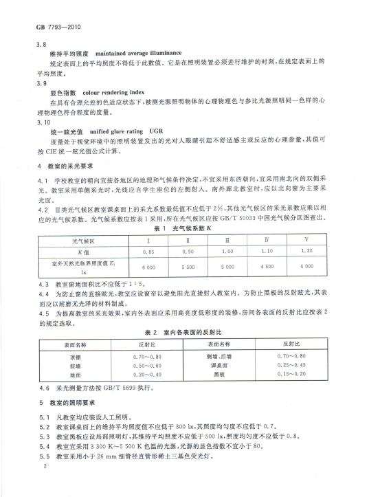 中小學(xué)教室采光和照明衛(wèi)生標(biāo)準(zhǔn)