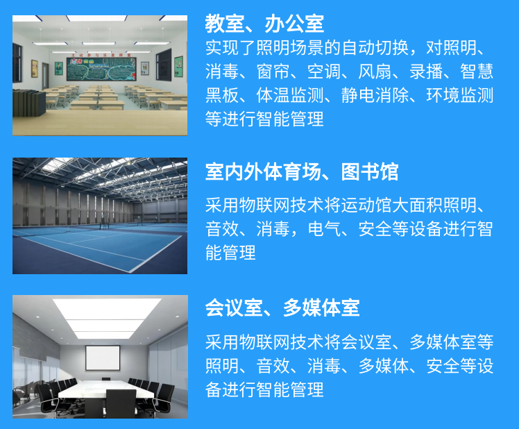 成才智造教育照明智控系統(tǒng)基于物聯(lián)網(wǎng)通訊技術(shù),使用數(shù)據(jù)采集模塊、控制終端,以藍(lán)牙、WiFi等無線通信技術(shù),通過云平臺(tái)遠(yuǎn)程設(shè)置延時(shí)、定時(shí)、場(chǎng)景等多種控制模式,實(shí)現(xiàn)對(duì)學(xué)校等場(chǎng)合照明設(shè)備的智能化控制,支持亮度強(qiáng)弱調(diào)節(jié)、軟啟動(dòng)、定時(shí)控制、場(chǎng)景設(shè)置、自動(dòng)報(bào)警、環(huán)境監(jiān)測(cè)、聯(lián)動(dòng)控制等功能,不僅為校園師生提供了健康光環(huán)境,而且滿足便捷管理需求,達(dá)到高效運(yùn)作的目的。