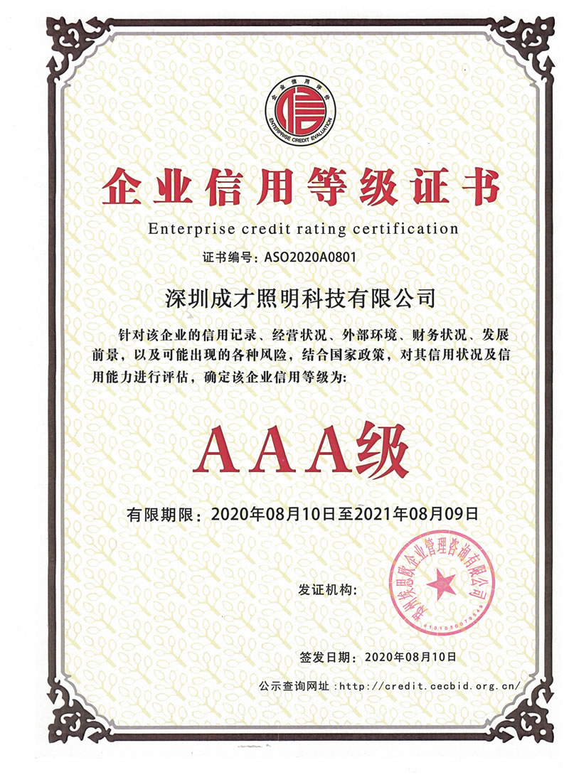 企業(yè)信用等級(jí)3A認(rèn)證