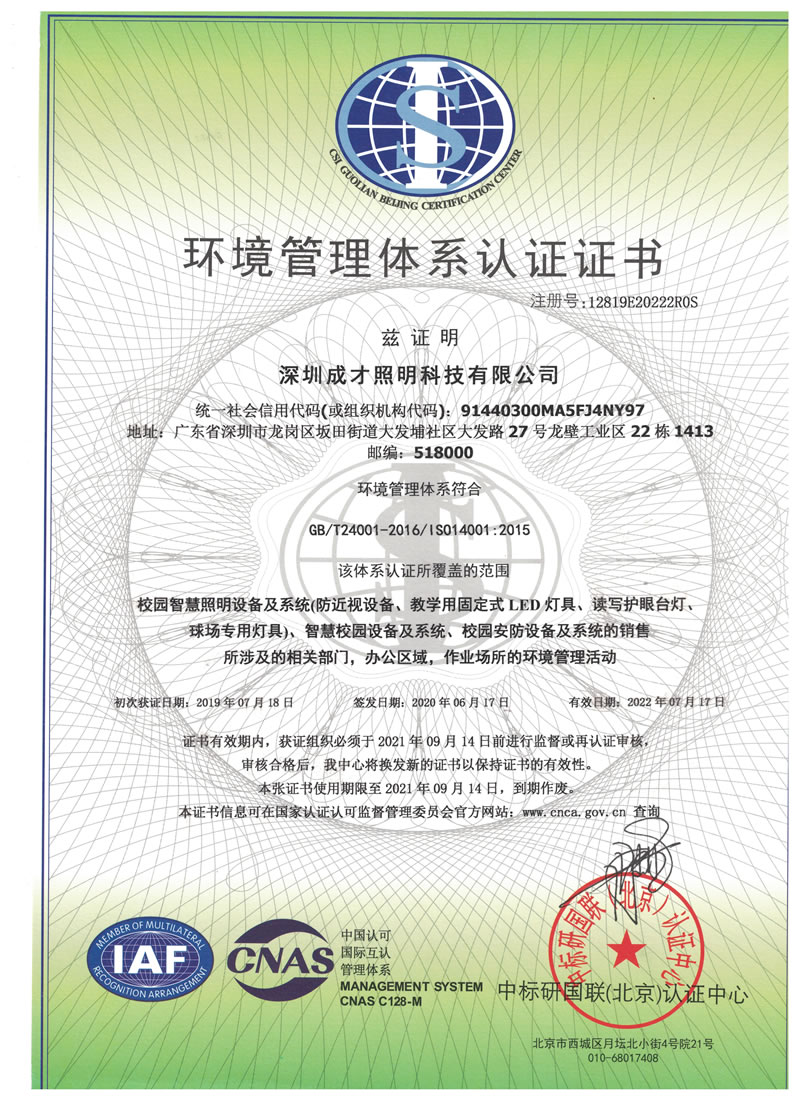 環(huán)境管理體系認(rèn)證證書