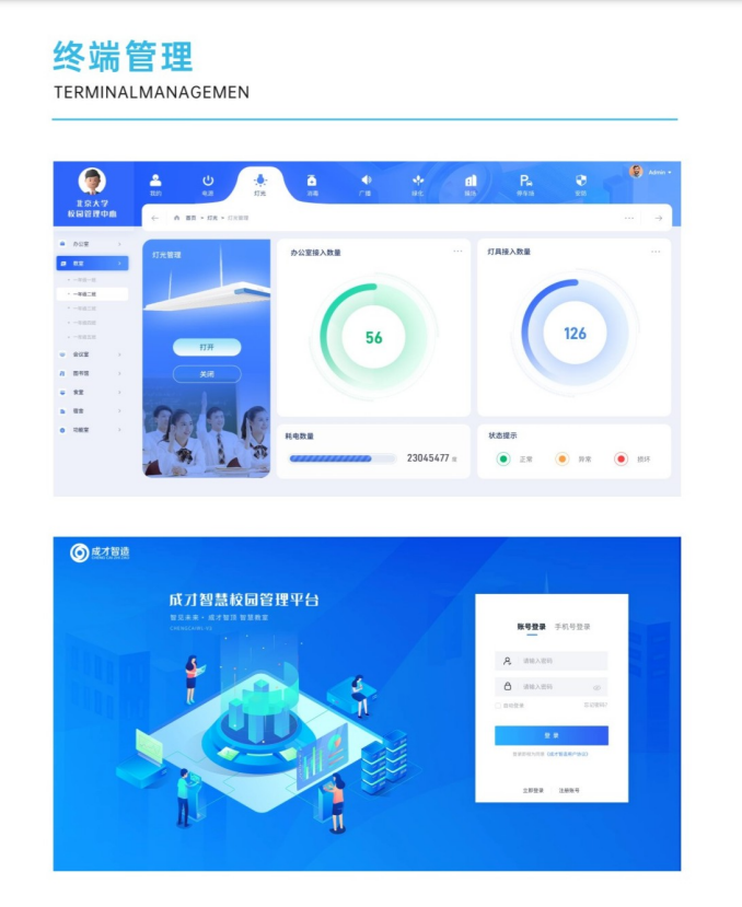 智能六種模式:一鍵切換六種模式(上課模式、放學(xué)模式、自動模式、自習(xí)模式、考試模式、投影模式),提供不同場景的最佳光環(huán)境,同時提高教學(xué)效率